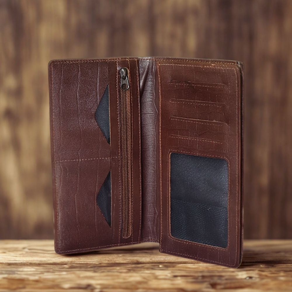 Genuine Leather Long Wallet Chocolate color